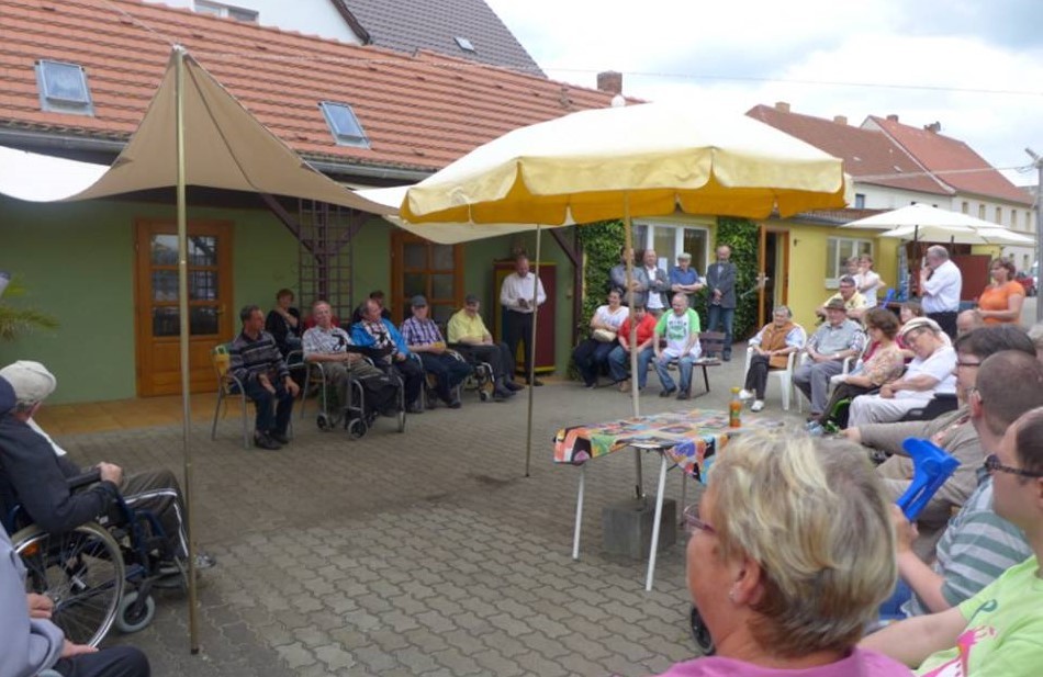 Zu unseren Monatstreffen kommen zwischen fünfzig und sechzig Menschen mit und ohne Behinderung in verschiedenen Altersklassen. Eigentlich können wir nie vorher sagen, wie viel es werden, wir können nur vermuten. Die Teilnehmer kommen aus dem Elbe-Elster-Kreis, aber auch aus den angrenzenden Landkreisen. Sie leben in ihren Familie oder in Wohnstätten, wo sie betreut werden. Besonders gute Kontakte haben wir zum Haus Prieschka und dem Christoporusheim in Großkmehlen, die regelmäßig mit ihren Leuten zu uns kommen. Transportiert werden sie in eigenen Kleinbussen oder vom ASB. Unsere anderen Teilnehmer werden von Familienangehörigen oder von ehrenamtlichen Mitarbeitern gebracht und wieder abgeholt. Einige Familienangehörige verbringen gemeinsam mit uns den Nachmittag und helfen teilweise auch bei der Durchführung.